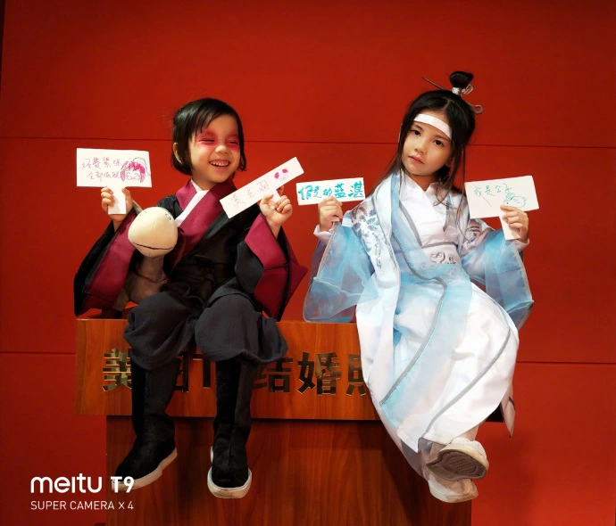 本届ChinaJoy全场也吸引了许多萌宝,“小蓝忘机”和“小魏无羡”也到美图T9结婚照相馆合影留念,莫非,这是“订娃娃亲”的节奏?
