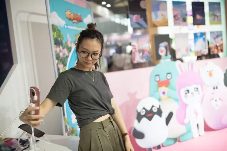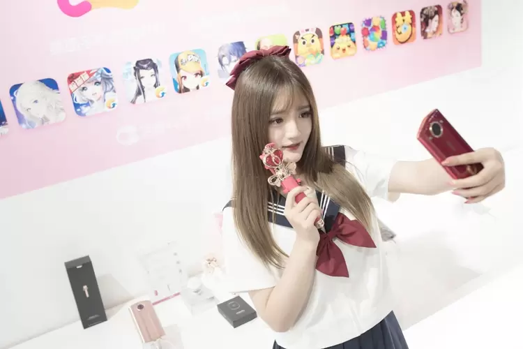 现场展出的美少女战士版心月棒自拍杆也成为了美少女们的自拍道具,非常会就地取材哦。