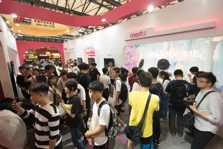 ChinaJoy 美图手机展区被男生挤爆棚 原因竟是要拍美图T9“结婚照”