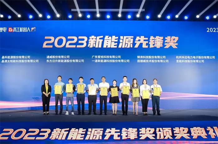 会议期间,由高工储能、高工产研(GGII)举办的光伏、储能行业权威年度评选“2023新能源先锋奖”颁奖典礼隆重举行,昱能科技获评“2023新能源先锋奖”。