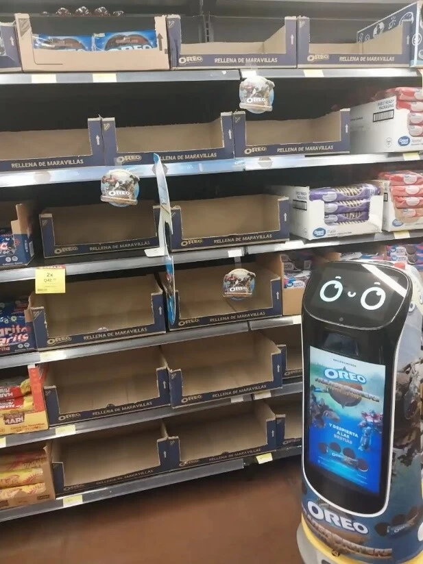 近日,普渡机器人“葫芦”在中美洲的沃尔玛超市中大放异彩。当地沃尔玛通过利用“葫芦”机器人的广告巡航模式,成功地推销了奥利奥与变形金刚联名产品,令货架一扫而空。