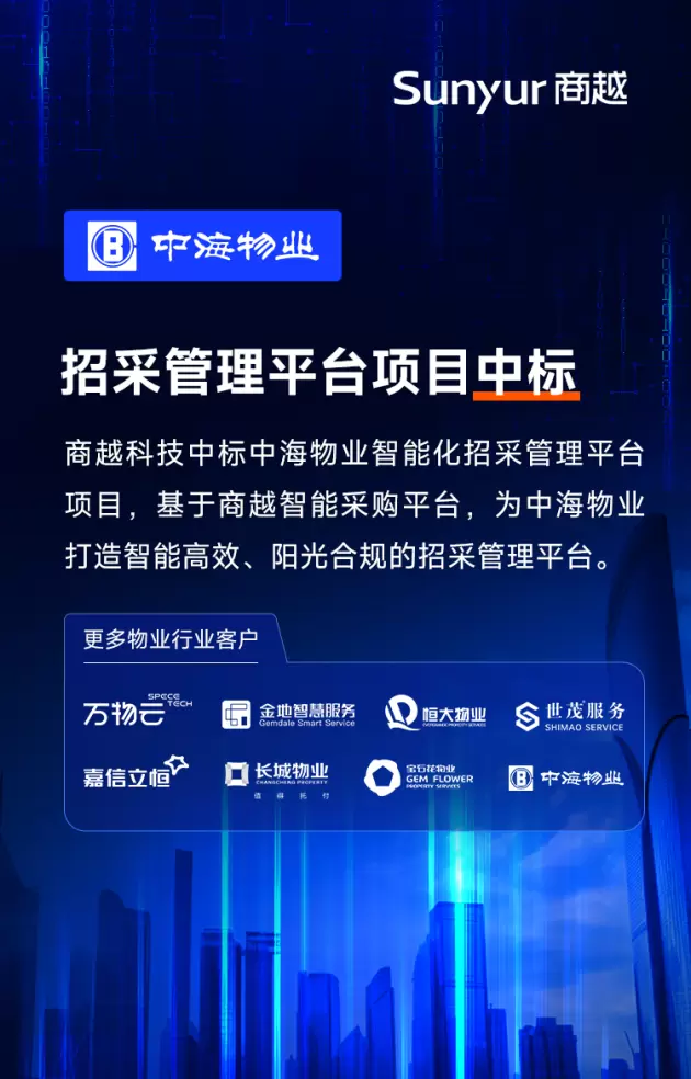 商越科技中标「中海物业」,基于商越智能采购平台打造招采管理系统