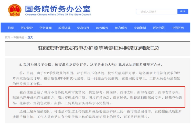 驻西班牙使馆曾专门发文提示签证材料照片问题