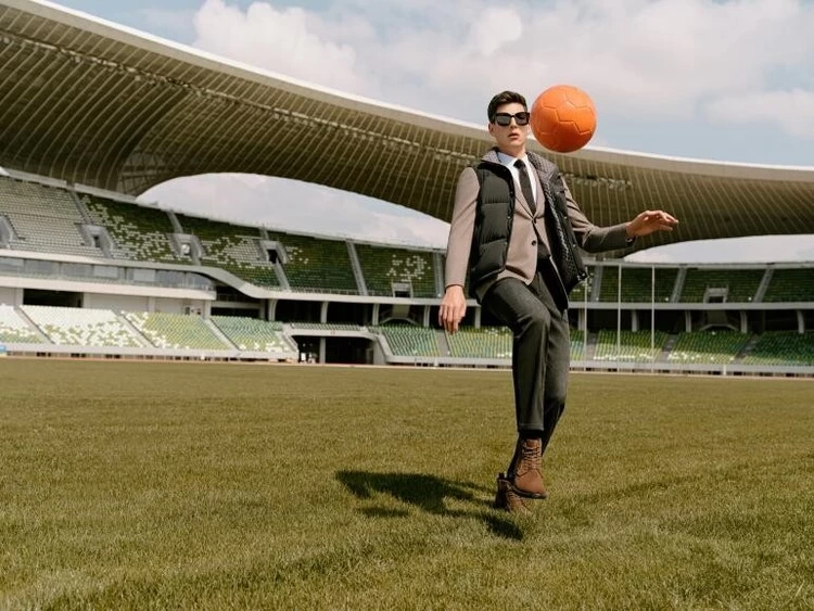 GIOVANNI VALENTINO 2023秋冬系列,重新解读自在于心的现代男士形象,以体育场馆为背景,加持多元商旅出行穿搭,诠释淡然与从容,呈现绅士的经典魅力与自信姿态。