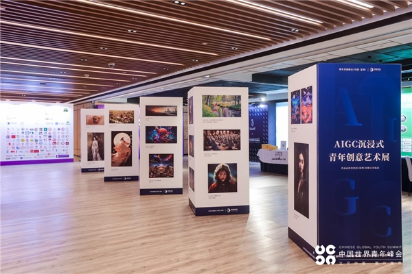 2023年8月6日,“AIGC沉浸式青年创意艺术展”在“青年发展峰会(中国·深圳)暨2023深港澳青年合作峰会”上盛大开幕。此次展览呈现了「风变·AI成长计划」学员们51幅基于AI技术创作的插画、设计、摄影等风格的艺术作品,旨在探索人工智能技术在艺术设计领域的应用,为未来的艺术教育和产业提供新的思路和创新方法,是一场AI与艺术的实验,也是一个融合技术、艺术和情感的沉浸式互动体验。