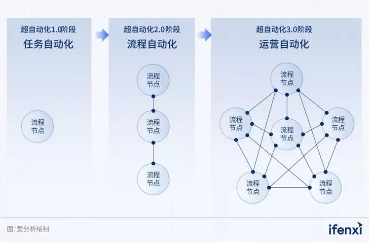 超自动化实现之路并非一蹴而就,需要经历由浅入深的三个阶段:任务自动化、流程自动化和运营自动化。
