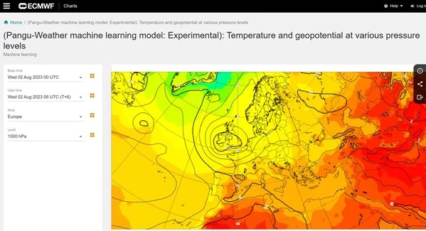 ECMWF website showing weather forecasts made by Pangu-Weather (Source: ECMWF)