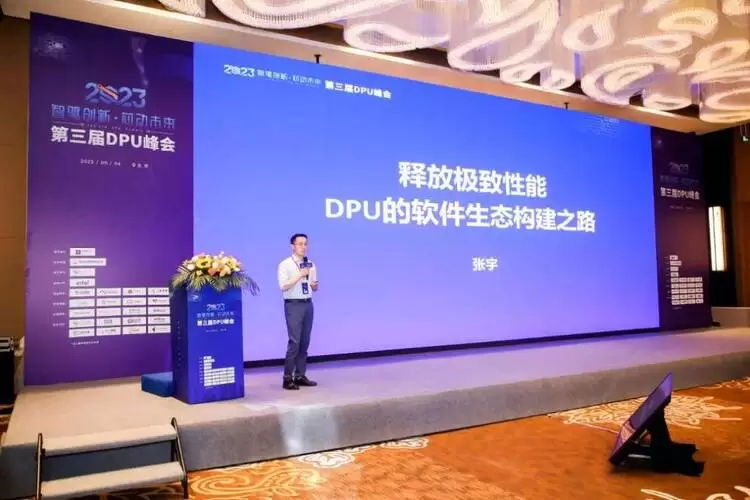 ▲ 中科驭数高级副总裁张宇在主论坛发表主题演讲