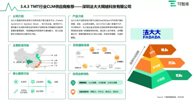 近日,TE智库(“亿欧智库”旗下智库品牌)重磅发布《中国CLM(合同全生命周期管理)市场产业趋势发展研究报告》(以下简称“报告”)。法大大作为电子签行业唯一企业,以出色的综合能力表现,在中国合同管理市场品牌竞争格局中居领导者地位。