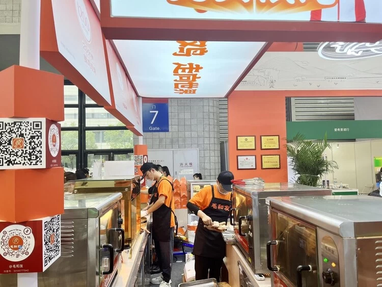 毛和友在本次2023年中国特许加盟展上成为了展会内最引人注目的焦点之一,吸引了大量观展人的目光,人气更是迸发到了高潮。无论何时何地,试吃队伍总是源源不断。