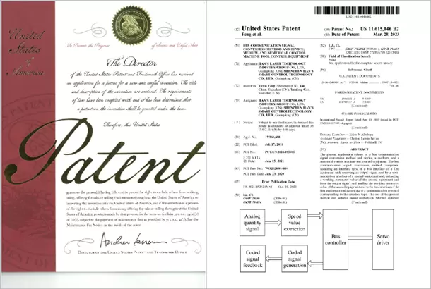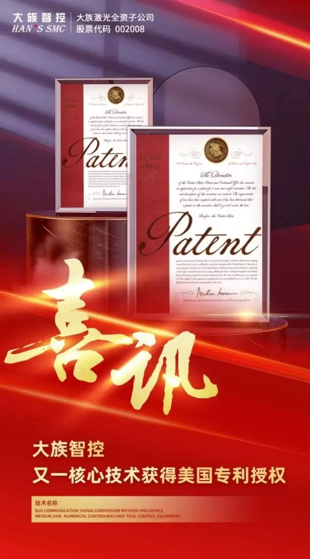 近日,大族智控核心技术“BUS COMMUNICATION SIGNALCONVERSION METHOD AND DEVICE,MEDIUM,AND NUMERICAL CONTROLMACHINE TOOL CONTROL EQUIPMENT”获得美国专利授权。