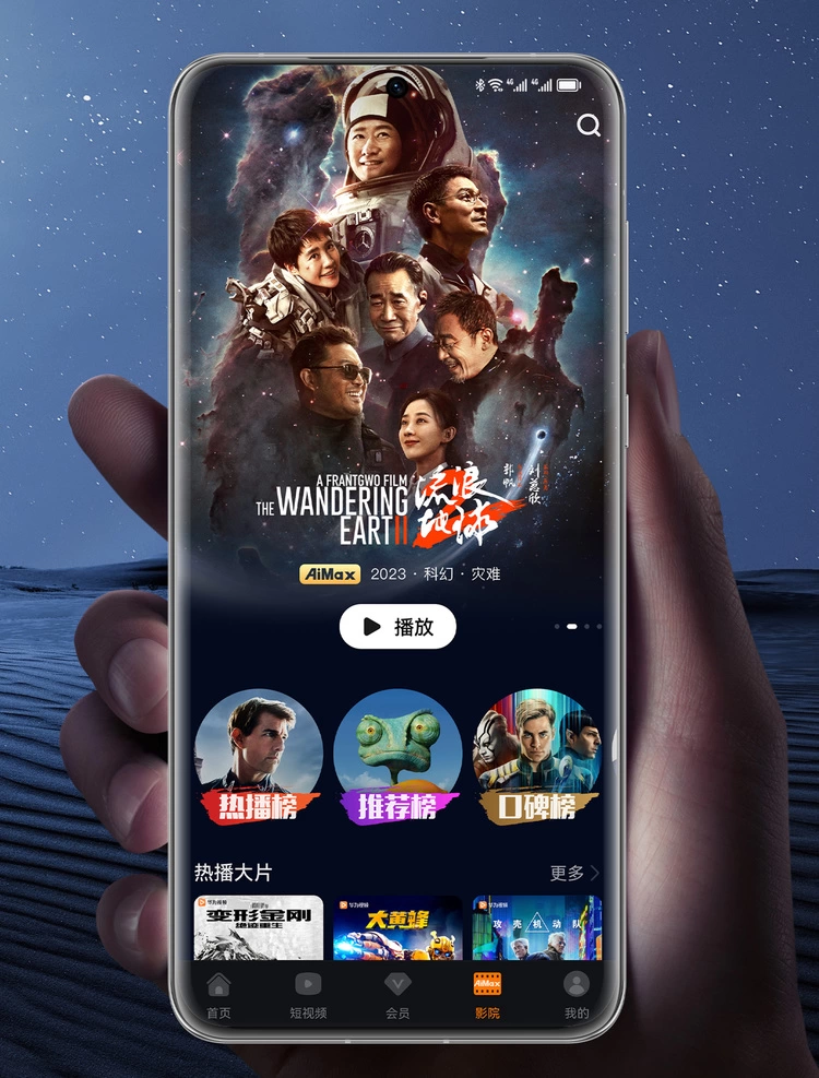 目前AiMax影院不仅支持华为智慧屏端,还在2023年初上线移动端,用户在华为手机、平板等移动终端同样可以获取到高品质的视听服务和影院级的临场体验。这一升级不只是将音视频播放内容简单地从大屏幕搬到小屏幕,而是从画质、音效、内容、交互体验等多维度、全方位提高用户在可移动场景下的观影体验,同时AiMax影院可以根据终端的不同配置和特性,与持续升级的移动端设备进行深度适配,自动匹配相应终端能支持的最佳音画配置,最高可支持4K分辨率、HDR Vivid色彩画质和5.1声道,为用户带来更沉浸、震撼的观影体验。