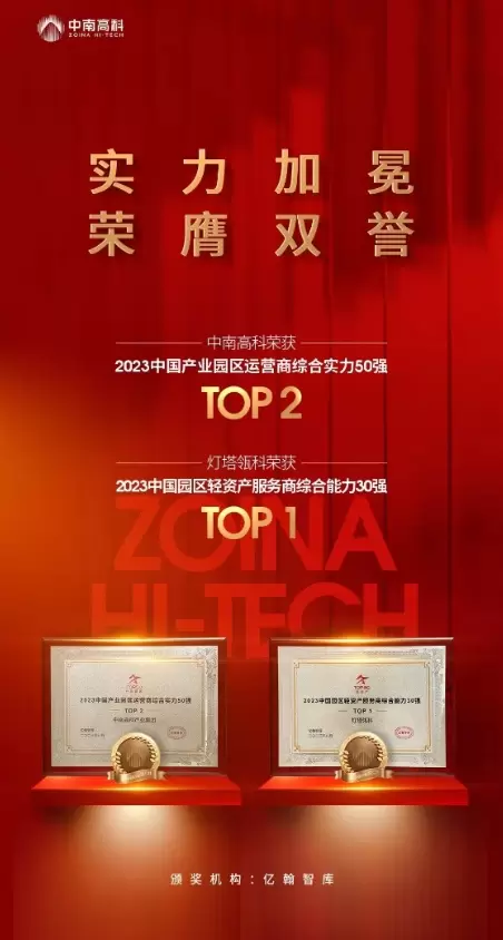 8月3日,中南高科凭借卓越的核心竞争力和突出的行业影响力在由业内权威智库机构亿翰智库发起的“2023中国产业资源战略峰会”荣膺“2023中国产业园区运营商综合实力50强”,并蝉联第二位。中南高科全新独立业务品牌灯塔瓴科则以其在招商服务和企业服务方面的杰出表现,荣获“2023中国园区轻资产服务商综合能力30强”,位列榜单第一,展示出行业对中南高科积极探索高质量、可持续发展实践的认可。