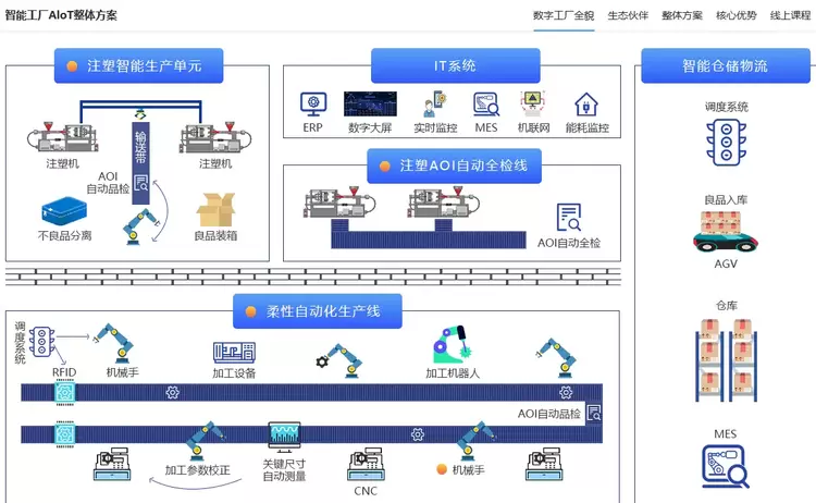 越来越多的企业开始注重数据化转型,而鼎捷软件作为为广大企业用户提供智能化工业系统,助力其数字化、智能化转型的好伙伴,紧跟科技进步的浪潮,通过科学布局精益化、数字化、智能化新工厂,将AIoT运用到新厂扩建、车间改造、产线升级、设备改造等企业改革进程中,软硬件相融合,可以有效加速企业/工厂的数字化转型与升级,通过这一套智能工厂AIoT方案进行改造,可满足公司未来10年以上的发展。