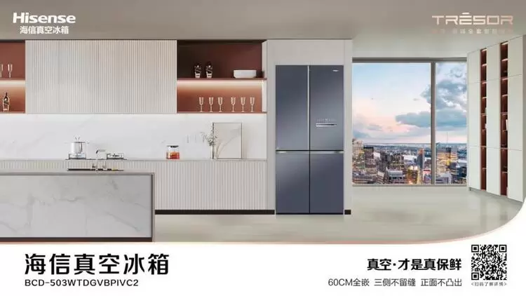 本次入驻栏目的海信真空璀璨冰箱503为海信冰箱真空矩阵的新产品,其搭载全新升级的“真空”保鲜科技,通过一键“真空”让食材处于低压低氧的“真空”保鲜状态,“真空”处理后能够有效减少食材氧化、食材风干、细菌滋生,极大程度提升食材的保鲜度。并且值得一提的是,本款海信真空璀璨冰箱503搭载业内领先的全嵌技术,实现60CM全嵌,三侧不留缝,正面不凸出,打造一体化艺术之家,为品质生活提供完美解决方案。