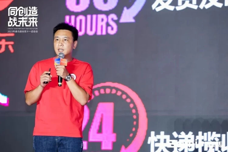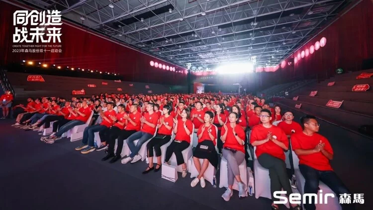 伴随着热烈的掌声,2023森马股份双十一项目总指挥吴树民上台发布了今年双11工作的战略部署,强调要始终坚持以消费者为中心,持续为消费者创造价值,共识业绩目标,输出关键策略,聚焦产品、资源、组织三大重要价值,推进全品牌、全平台、全资源的深入合作,提出要通过数字化大场门店、打通品牌会员系统、打造线上新品等创新“玩法”,进一步推进全域双十一的落地,切实践行公司新的文化价值观“一个森马、一个团队、一个目标、一起奋斗”。