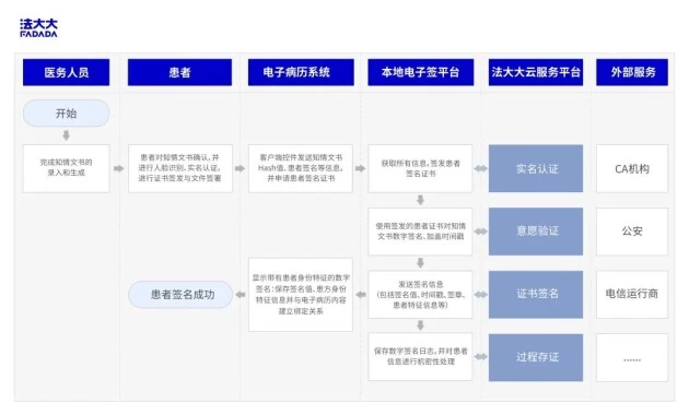 在诊疗过程中,患者本人需要签署知情同意书,表示自愿进行医疗治疗,在以往的签署场景下,患者通常通过纸质文件进行签署,签署后如果保存不当,则容易造成文件丢失溯源难。