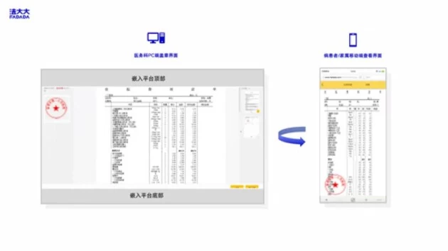 法大大新一代数智化签约管理平台,将电子签名及电子印章精准地使用在门诊和住院服务中,“数字化+无纸化”双轮驱动,提升患者的就医体验,助力医院降本增效。