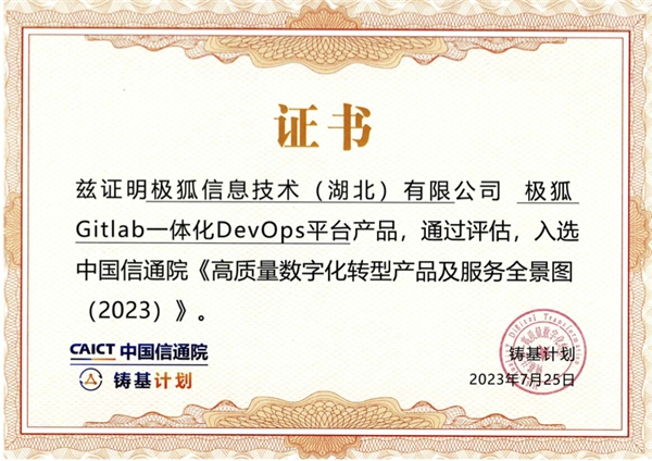 极狐GitLab 一体化 DevOps 平台入选《高质量数字化转型产品及服务全景图(2023)》