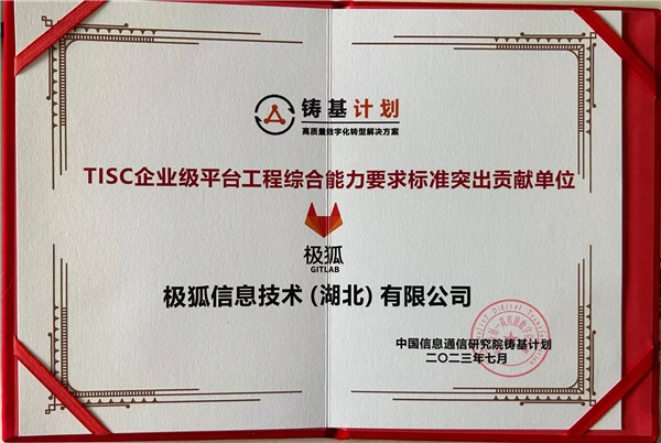 极狐(GitLab) 被评为「TISC企业级平台工程综合能力要求标准突出贡献单位」