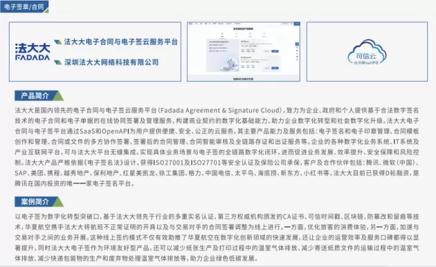 近日,中国信息通信研究院(以下简称“中国信通院”)正式公布了《可信企业级SaaS产品能力生态目录(2023)》,法大大作为电子签行业领军企业荣誉上榜。