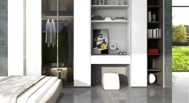 一个高度定制化的衣帽间落地,从隔板、抽屉到五金功能件,处处彰显着独特的匠心工艺和审美机制,通过空间秩序的解构与重组,打破既定陈设,催生全新体验,焕活生活的规整与简洁。