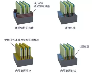 在逻辑器件中,栅极隔离层长期以来一直被认为是减少栅极之间以及栅极和栅极触点之间寄生电容、从而降低串扰风险的一种手段。隔离层的概念被引入了3D环栅结构中,但额外的要求是,隔离层材料还必须充当横向刻蚀停止层。