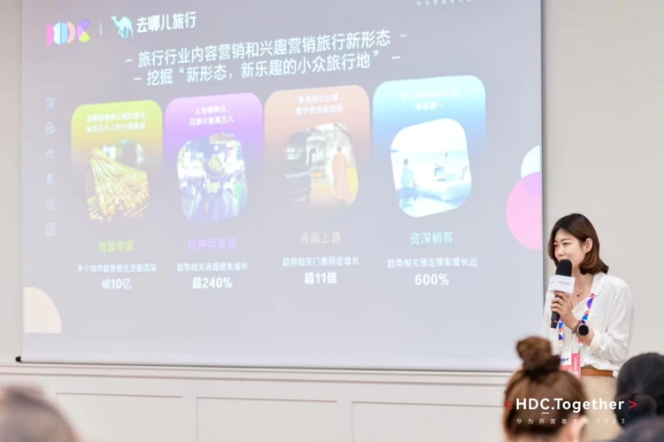 去哪儿旅行CMO黄小杰在演讲中分享,双方的合作会将去哪儿的旅行预定、旅游攻略、景点门票、规划行程等功能接入华为意图框架,意图框架会根据用户的时间、位置、设备状态、运动状态和习惯等维度数据,综合感知和理解用户意图,在合适的时间向用户推荐合适的服务。例如,系统学习到用户最近想要去北京,便会在用户习惯看这些内容的时间点,推荐他感兴趣的北京攻略榜单类内容,去哪儿的旅行服务就可以更精准触达用户。
