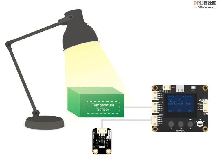 关于该项目的详细的介绍,您可以访问“DF创客社区”—“SCI数据采集模块: 探索颜色、光线和热量间的关系”了解更多。