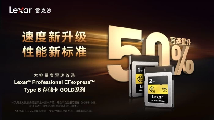 在专业摄影和摄录领域,高清晰度视频和高分辨率图像的存储和传输需求很大,存储容量也越来越重要。Lexar雷克沙通过技术创新,开发出最大容量可高达2TB容量的Lexar® Professional CFexpress™ Type B存储卡GOLD系列,根据Lexar质量实验室数据,可存储8K RAW视频96min,8K视频542min,20MP图片35.2万张,10MP图片72.5万张。超大容量能够让专业摄影师专注于创作与发挥灵感,有效避免专业拍摄过程中因容量不足而需要频繁更换存储卡的困境。
