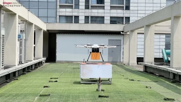 2023年8月10日上午11时整,伴随着螺旋桨的声响,搭载着12例临床检验标本的无人机平稳升空,从位于长安区的王曲社区卫生服务中心出发,飞往约31公里外的目的地——位于西咸新区的西安区域医学检验中心(以下简称“西安医检”)核心实验室。这是西安医检首次运用无人机运送临床检验标本。