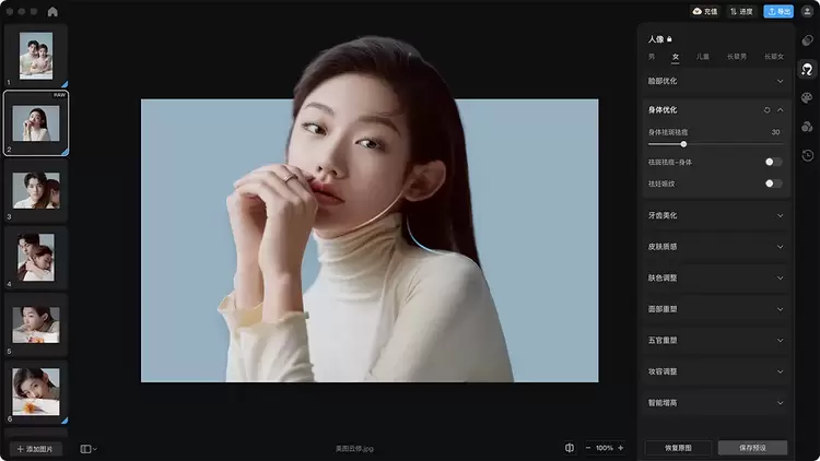 美图云修是美图公司为商业摄影市场提供的AI精修解决方案,基于商业摄影市场的巨大前景,以批量式AI图像处理功能推动行业数字化进程。