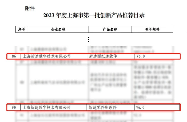 图纸通和3DSource零件库双双入选《2023年度上海市第一批创新产品推荐目录》,充分体现了相关政府部门对这两款创新产品先进性和市场潜力的的认可肯定,以及对新迪数字技术创新能力和市场竞争力的高度肯定。