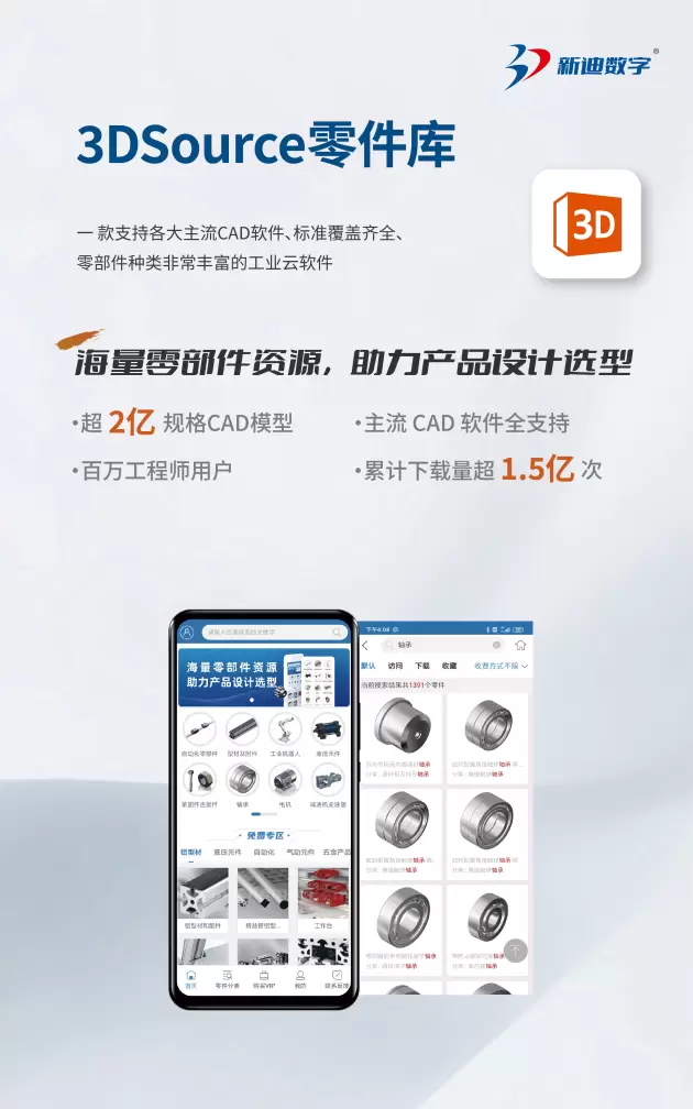 “3DSource零件库”是一款支持各大主流CAD软件、标准覆盖齐全、零部件种类非常丰富的工业云软件,是国内领先的、用户规模非常庞大的3D零部件资源库。
