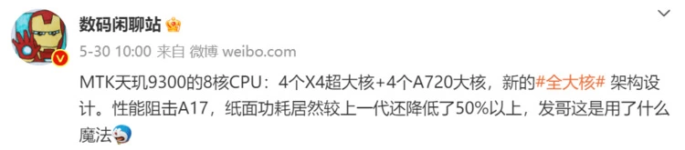 下代旗舰手机标配:全大核天玑9300和极速LPDDR5T内存