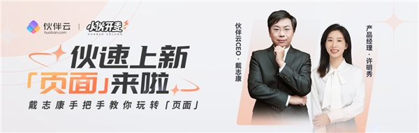 近日,零代码平台伙伴云产品「页面」功能正式上线,在【小伙开麦】直播间,CEO戴志康和产品经理共同为在线观众展示「页面」的功能与使用技巧,让小伙伴们大呼过瘾!好玩、好用、好看的「页面」,到底有哪些亮点?让我们跟随戴总和产品经理的讲解,一起看看吧!