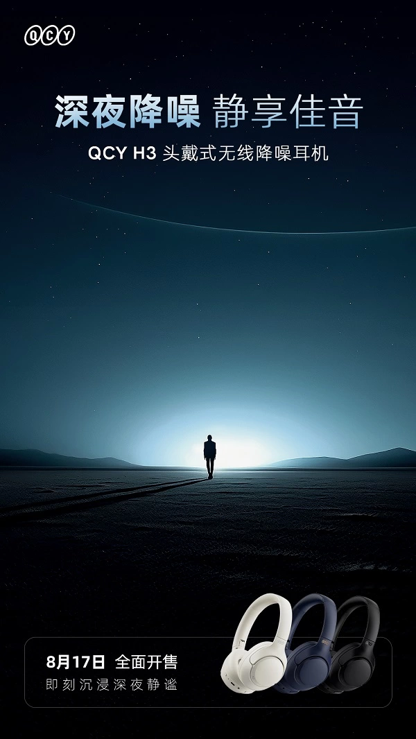 QCY H3头戴式无线耳机8.17即将开售,带来沉浸式深夜降噪体验!