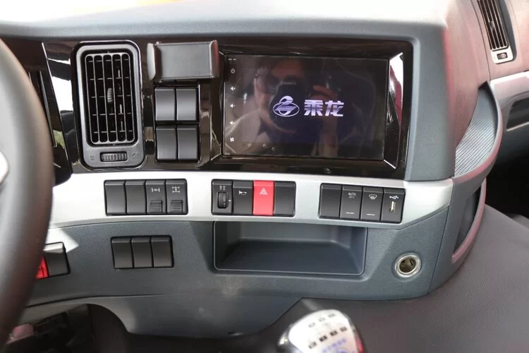 外观方面,整车搭载乘龙H5新驾驶室,采用哑光深黑前脸及熏黑前照灯设计,在延续家族式前脸的基础上进一步提升车辆“颜值”与辨识度。