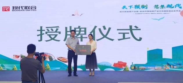 天下预制,慧集现代。2023年8月14日,由杭州市商务局授予的首批“杭州市预制菜产业示范园”之现代预制菜产业园在杭州农副产品物流中心博园路1号的山海共富农优产品展销窗口数字大厅隆重举行启动仪式。本次活动是在杭州市人民政府的支持下,由现代联合控股集团主办,集团旗下子公司现代慧集(杭州)科技有限公司承办。