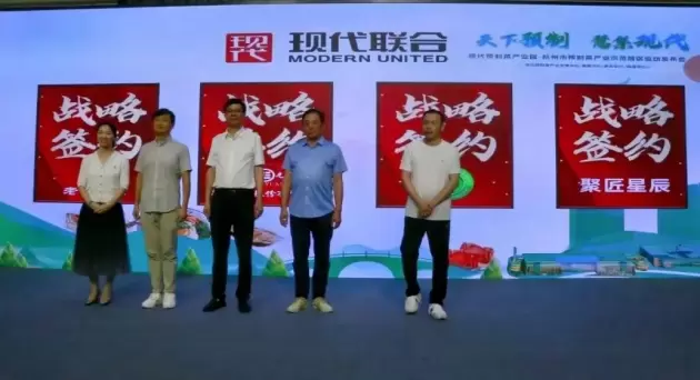 现代慧集(杭州)科技有限公司与浙江震元股份有限公司、聚匠星辰、浙江省中小企业餐饮协会、老号文化传播(杭州)有限公司等四家横跨中医药大健康、电商直播、杭帮菜领域的领先企业和行业协会进行战略签约。