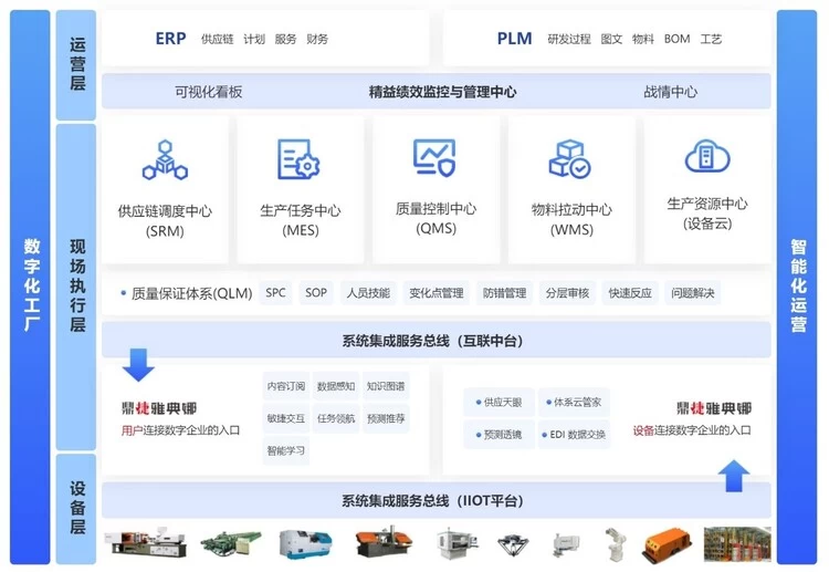 不仅如此,鼎捷汽车工业全流程解决方案,还围绕研发、准交、质量、成本,运营层以ERP为基础,将供应链、计划、服务、财富等系统集成,通过PLM系统建立从设计到生产运营的流程和数据的快速通道 ,实现真正意义上的“设计生产一体化”;并通过SRM供应商协同、高效协同MES系统解决方案、WMS厂内智能物流系统解决方案、设备云等系统,以全新的数字化协同管理方式,应用于派工、生产、设备、质检等各个场景,做到生产透明化,生产管理数字化;在助力零部件企业实现精益和敏捷制造的同时,也在实现企业智能化运营,从而实现弯道超车。