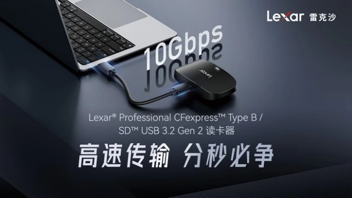 最后一款新品Lexar® Professional CFexpress™ Type B / SDTM USB 3.2 Gen 2读卡器,支持同时双卡双读、高速传输,并且兼容多种接口设备,可以多场景使用不受设备限制,传输稳定,大大提高了创作者的工作效率。