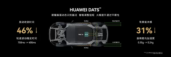 其次,HUAWEI DATS系统在通过颠簸路面时,可通过动态自适应调节扭矩减少车辆的整体的晃动,更快速地让车身稳定下来,提升驾乘舒适性。最后,HUAWEI DATS系统还采用动力线性化设计,通过动态降低电机功率,实现整车功率波动最小化,从而降低整车能耗,更省电。