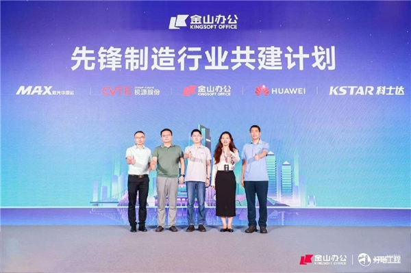 大会现场,华为、视源股份、创鑫激光、科士达等多家高端制造企业宣布加入金山办公“先锋制造行业共建计划”,共创高端制造业数字办公场景,推动行业方案不断创新。