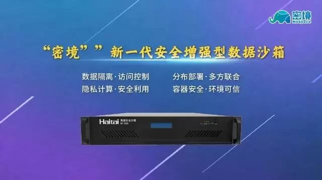 海泰方圆“密境”数据安全沙箱是一款软硬一体的数据安全共享利用平台,数据安全沙箱具备访问控制、细颗粒度权限控制、数据脱敏、可信执行环境以及数据加密等多项安全增强特性,提供全流程的数据安全保护。