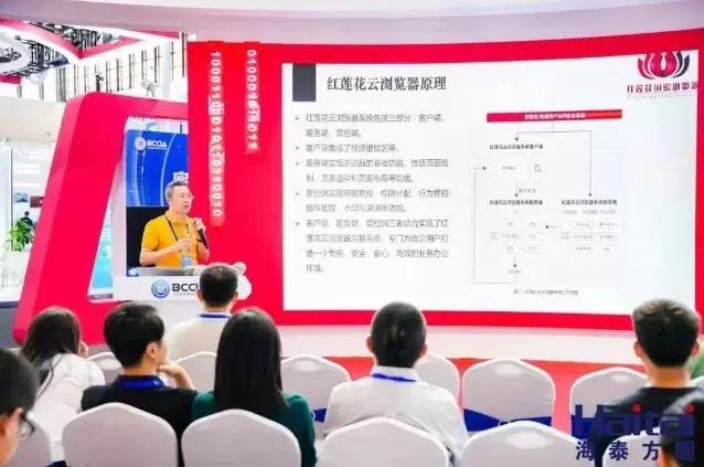 会上,海泰方圆浏览器事业部副总经理Micheal刘在《云浏览器隆重推出 应用迁移困扰不在》的主题演讲中对于与会者广泛关注的浏览器应用问题进行了详细解答和介绍。