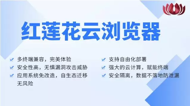 海泰方圆自主研发的红莲花云浏览器可以通过虚拟化和远程浏览器隔离技术,有效保障本地终端安全、防止资料外泄,实现用户业务系统免改造,对于迁移难度大的业务系统进行支撑,有效避免由于改造难度大而影响自主创新替代进度的问题。