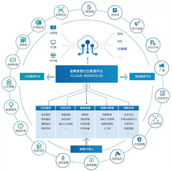 华正星聚智慧社区解决方案在社区管理中,按照物联、数联、智联三位一体打造智慧社区平台,以引领社区治理能力的提升。