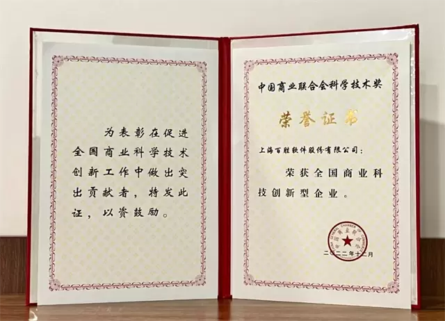 科技创新,权威认证!百胜软件荣膺“2022年全国商业科技创新型企业”