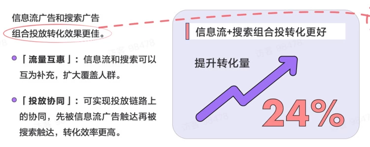 如果广告主只聚焦投放信息流,而不在搜索广告上下功夫,大概率会有50%以上的用户被同行业的竞品转化走。
